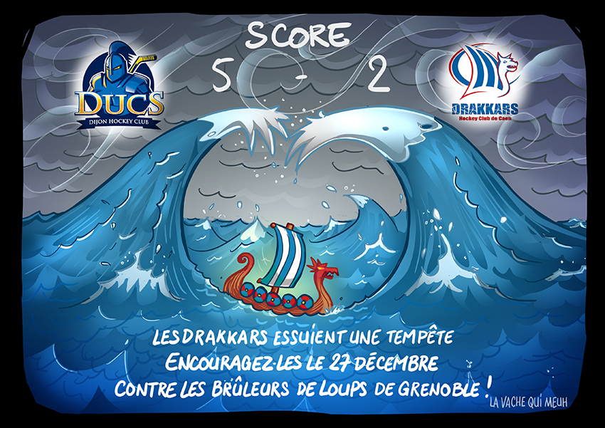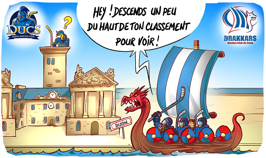 Illustrations réalisées pour la page facebook de l’équipe première de Hockey de Caen : les Drakkars.