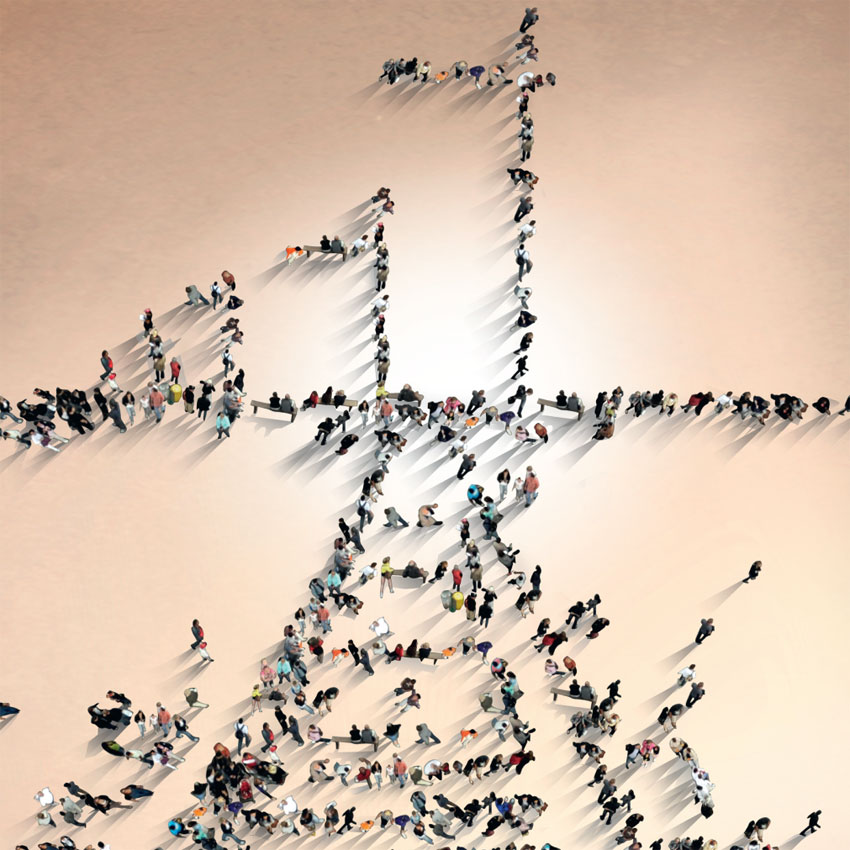 Le concept est un dessin de voie férrée composé d’une foule de personnes.