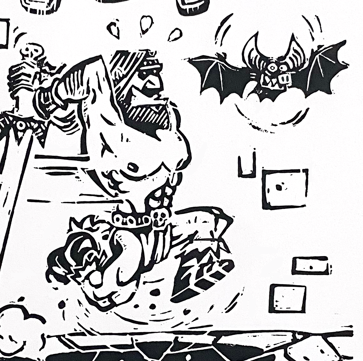 Je lance aujourd’hui la première linogravure d’une série de 4 (et peut être plus) gravures inspirée par le jeu « HEROQUEST ».
